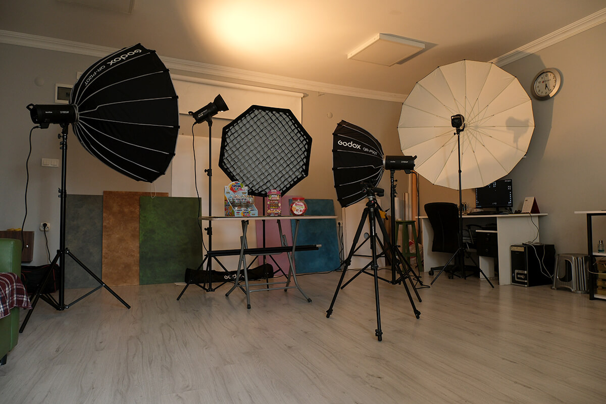 Godox Paraflaş ve Sürekli Işık Sistemleri kullanılmaktadır.
